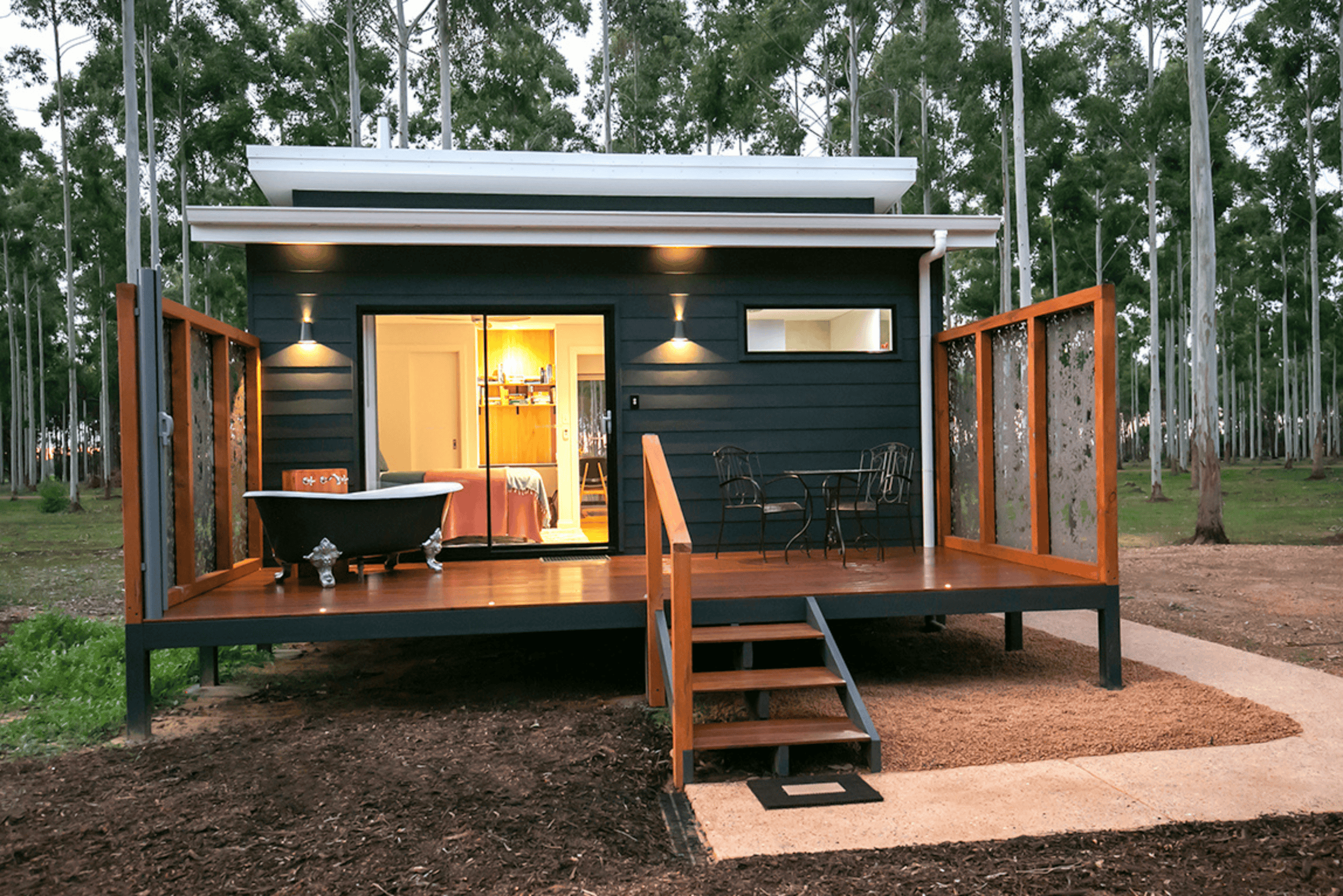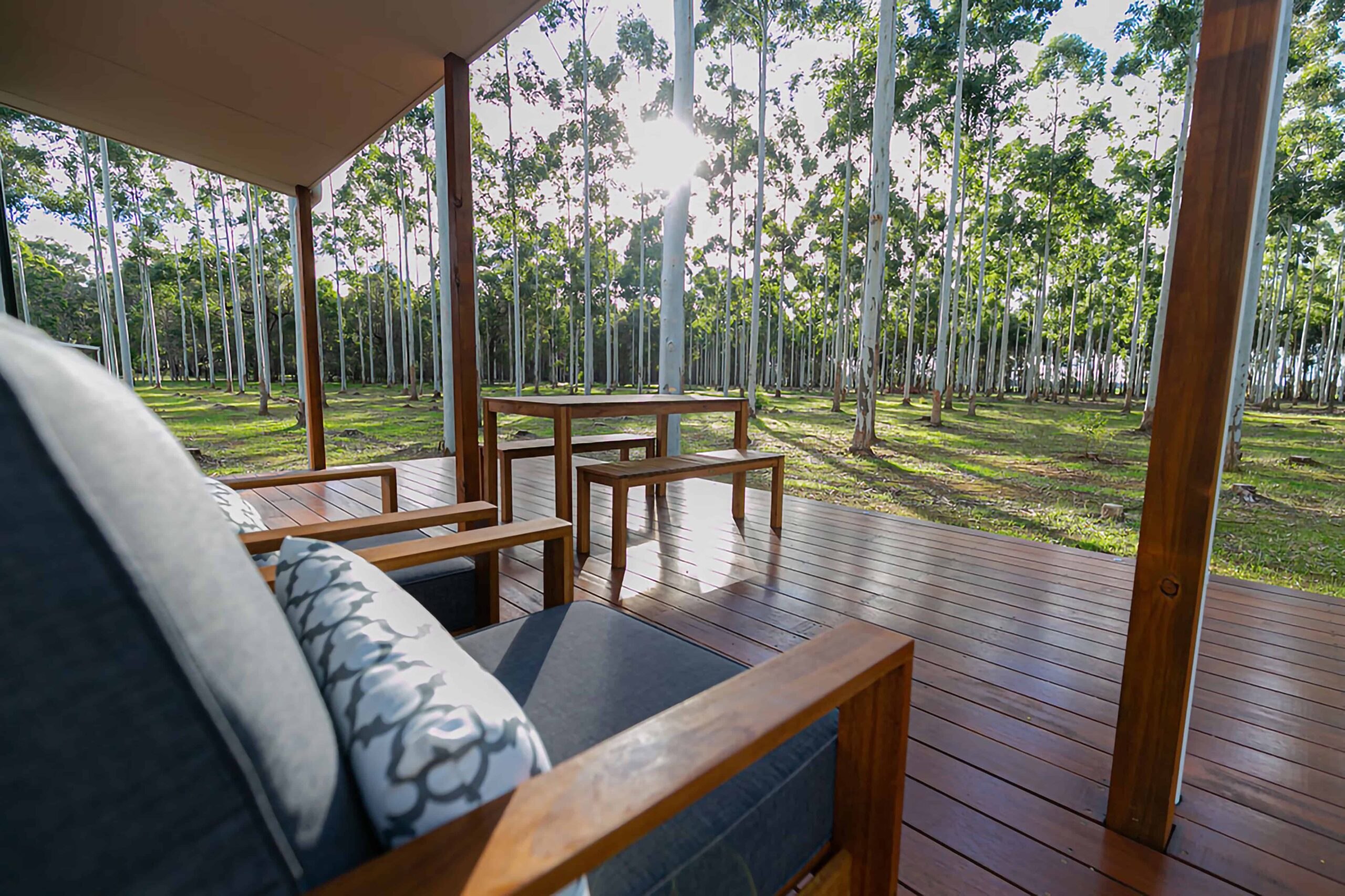 Tree Chalets are tucked away in the quiet rural location of Acton Park, home to just 92 residents. From the moment you arrive, you’ll be greeted by a breathtaking view: over 1,000 majestic Rosegum trees, their striking white trunks stretching out before you. Each of our self-contained luxury chalets provide 180 degree views into this unique vista. Whether you’re relaxing on the deck or unwinding in bed or the bath, you’ll be surrounded by nature at its best.