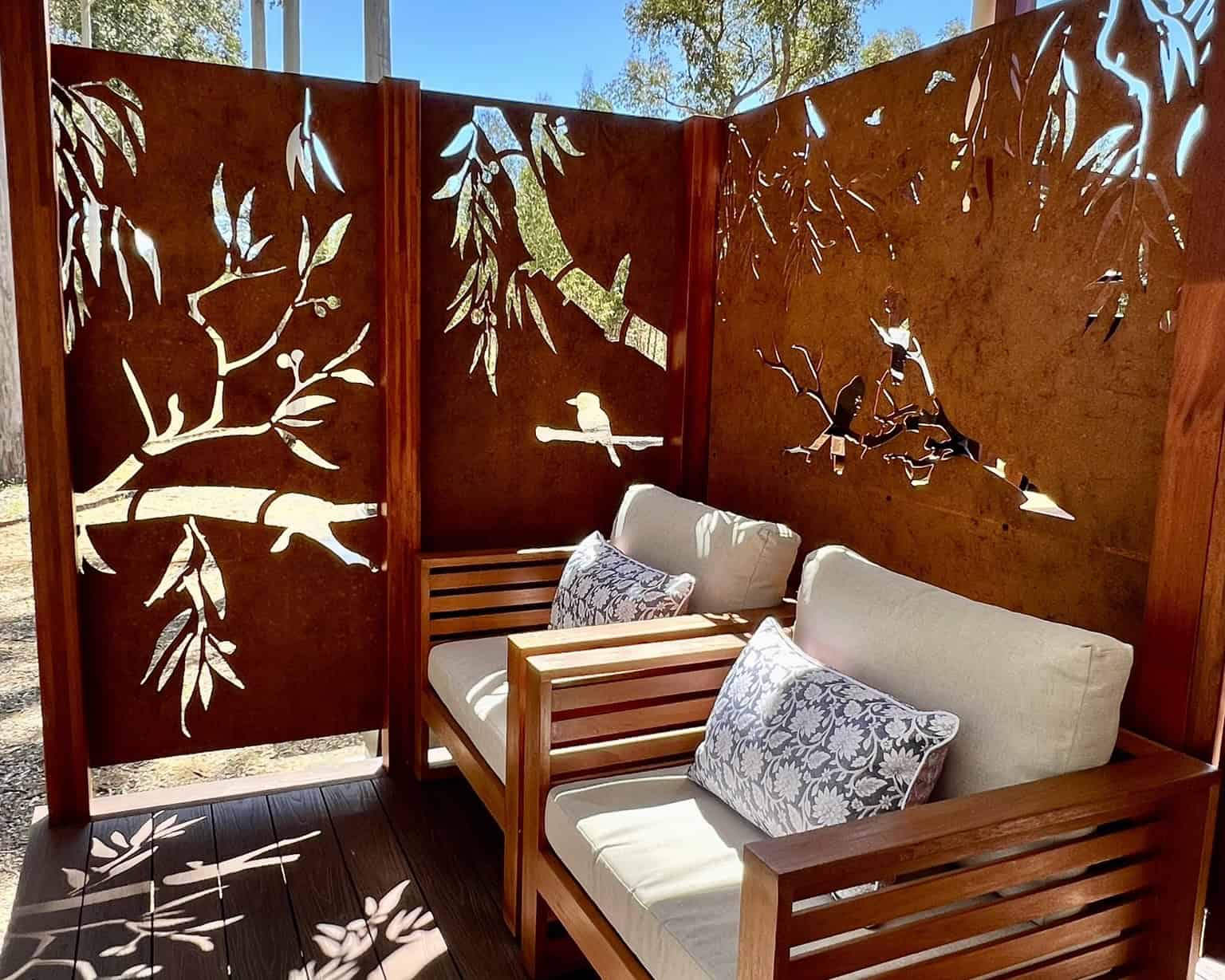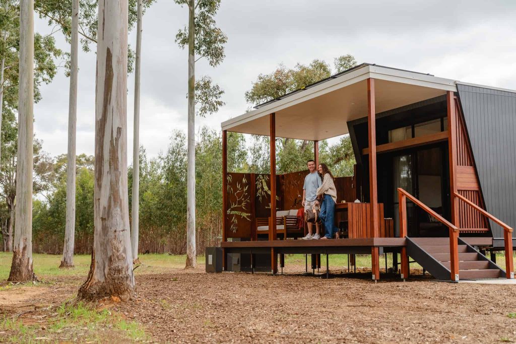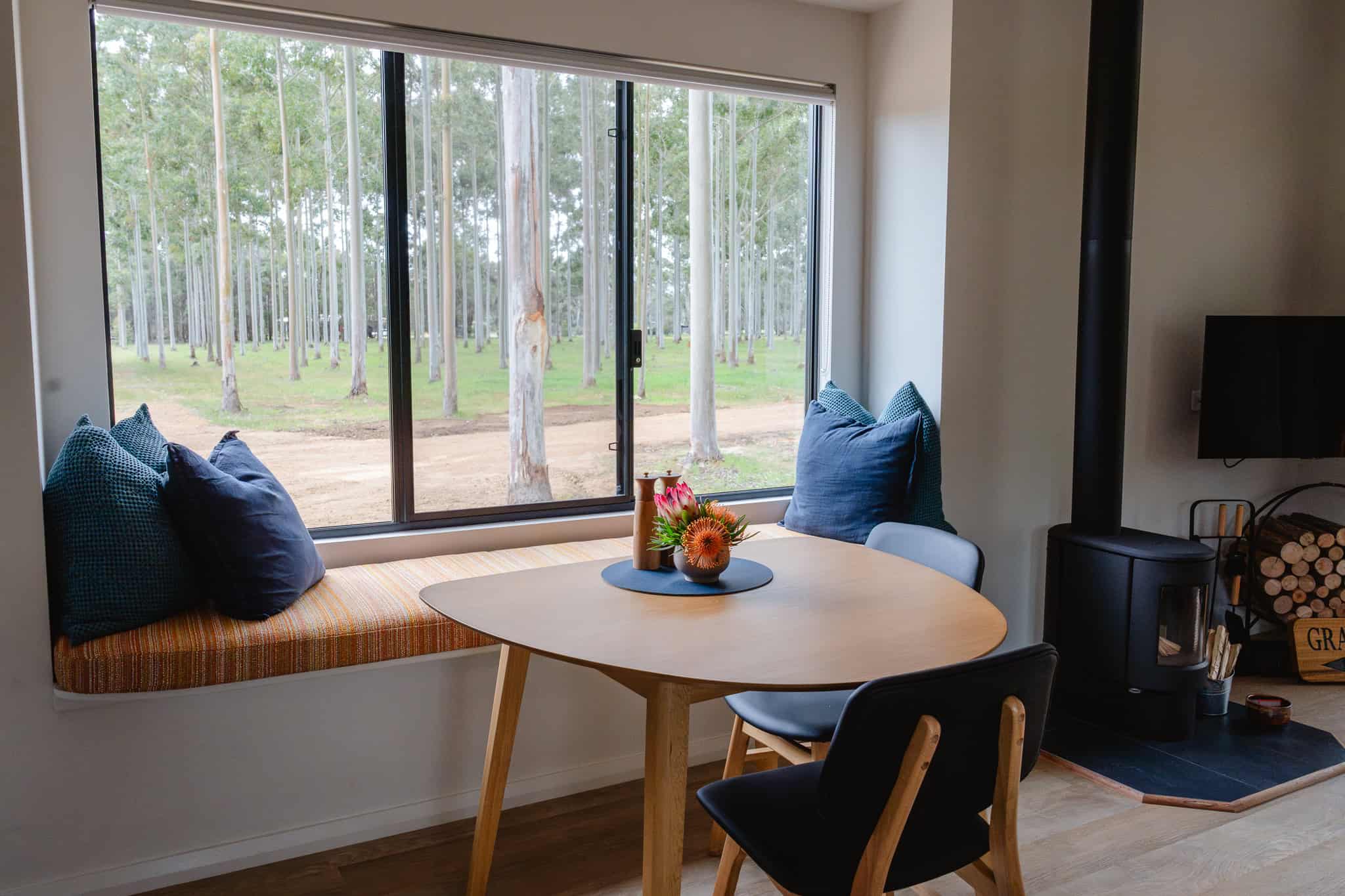Grandis, our premium chalet, is set 450 metres into the property and is the only chalet located on the northern side of the plantation offering exclusive access to this area. Enjoy tree and farmland views from the secluded bath deck, while the front deck showcases the striking white trunks of the Rosegums (Eucalyptus Grandis).