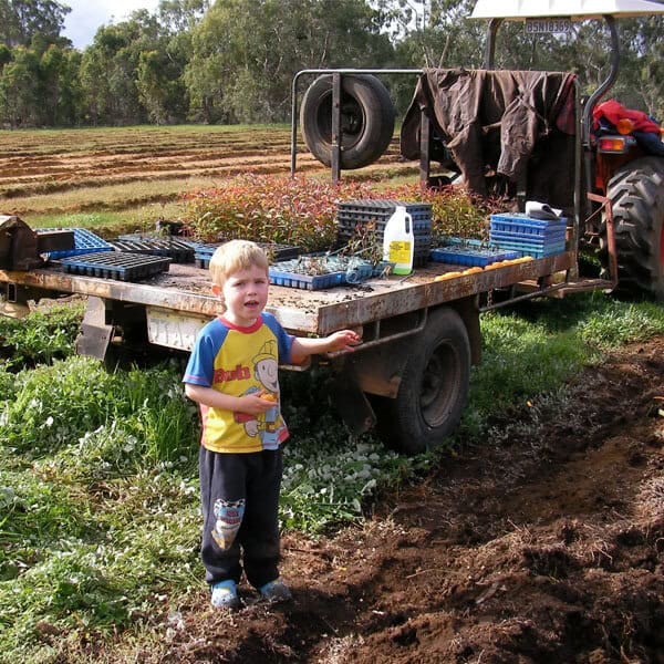 In 2008 with the help of family we planted 6000 Rosegum trees to start our tree farm. Each tree was individually planted and fertilized by hand. At 18 months the trees stood about 3 metres high; 5 years they were 15 metres and in 2019 at the age of 11 years they were towering 25 metres tall. For the first 8 years, each tree had to be hand trimmed to remove lower branches. The plantation was also thinned out to remove trees that did not have the correct shape. All of this labour-intensive work could not have been done without the help of our family and friends.